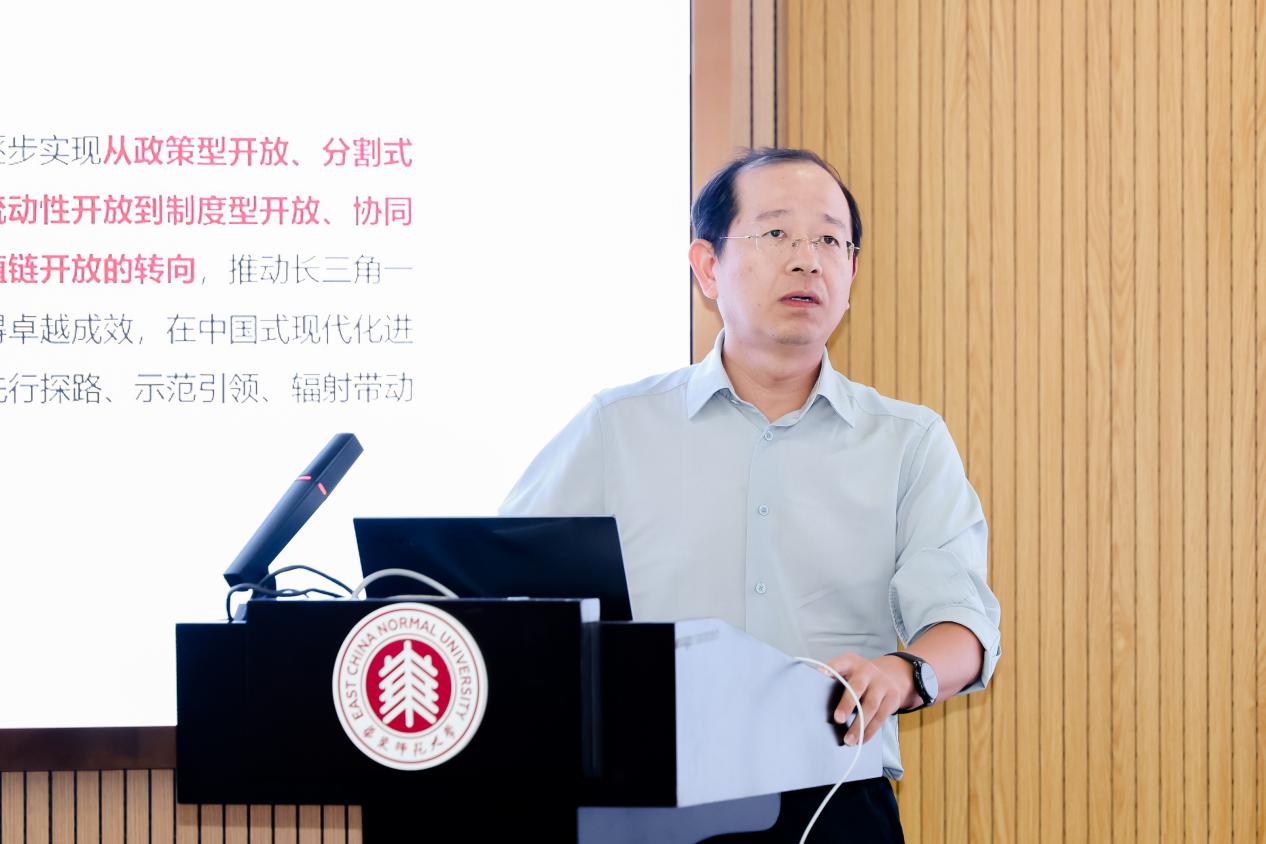 上海财经大学长三角与长江经济带发展研究院执行院长、讲席教授张学良的发言主题为《高层次开放与国家区域重大战略联动》。他指出,中国过去40多年的发展形成了以制造业为中心的生产型发展格局。面对全球产业链布局和国际政治经济形势的变化,中国必须从传统开放模式转向“高层次协同开放”。这一转型包含三大核心方向:从“政策型开放”转向“制度型开放”,从“分割式开放”转向“协同性开放”,从“要素流动性开放”转向“价值链开放”。中国新发展格局正呈现大、小“钻石—菱形”的空间协同特征,东部三大城市群与成渝地区双城经济圈构成大“钻石菱形”顶点,中西部五大国家中心城市连接所在的五大都市圈、四大城市群形成小“钻石菱形”的未来增长级。未来应打造陆港型全球城市与全球城市区域,释放中西部发展潜力,形成中国新的国际竞争优势。